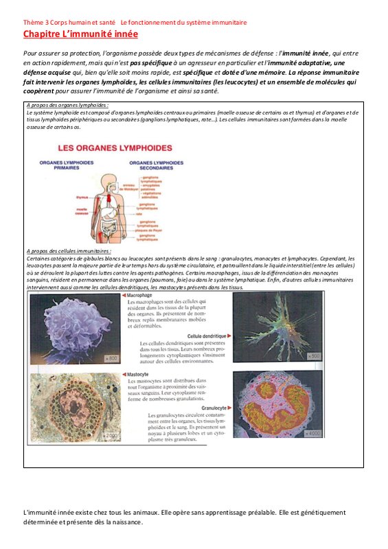 Immunité innée, le bilan - SVT - SANTÉ 1ère spé
