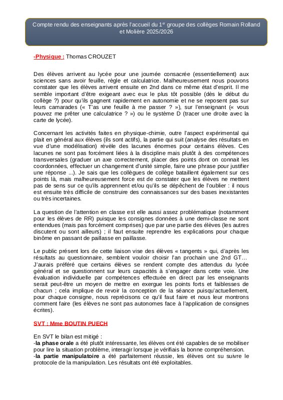 LIAISON COLLEGES ET LYCEE ROMAIN ROLLAND